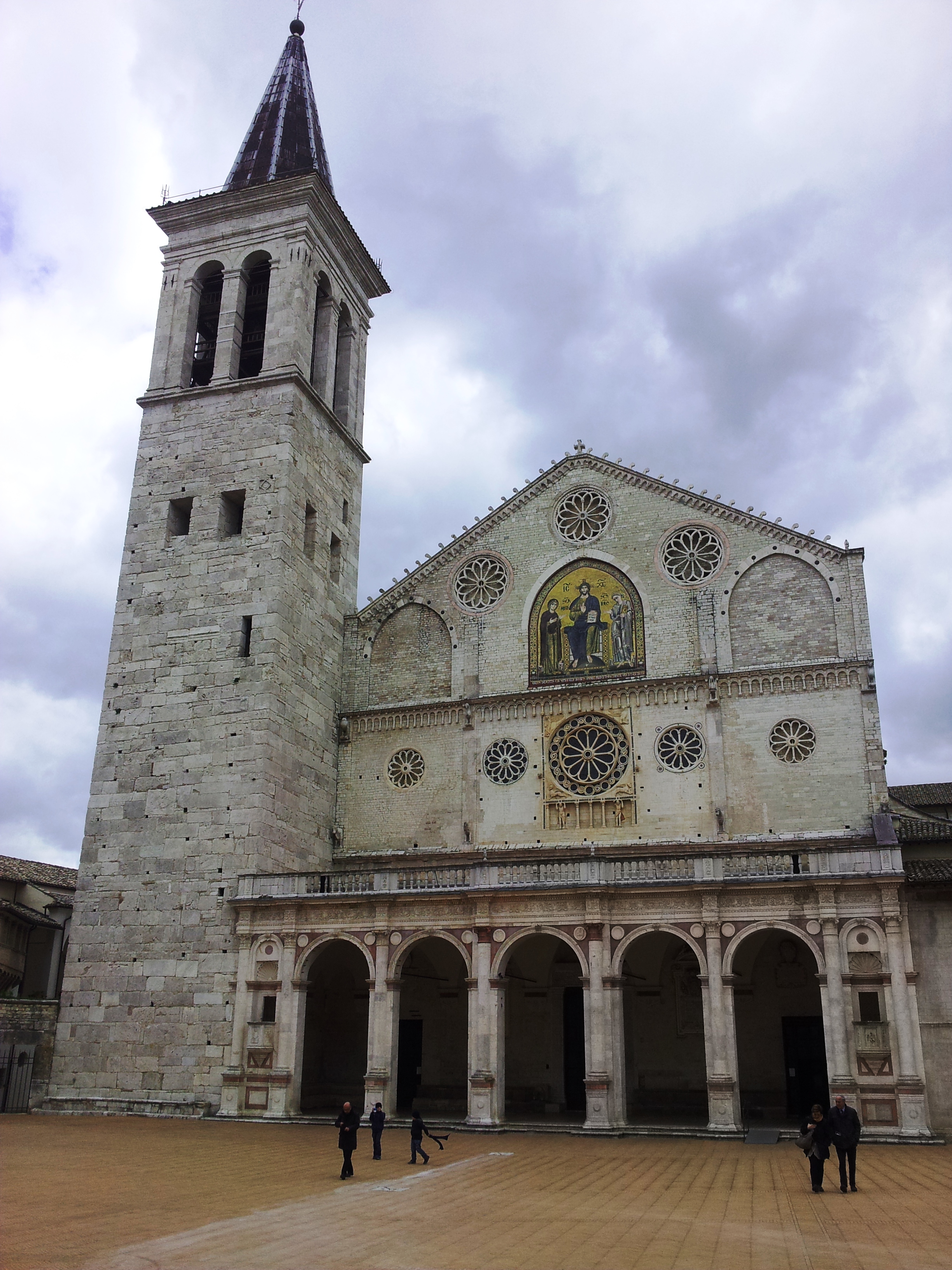 Il Duomo (XII secolo) ha in facciata una grande rosa centrale e un maestoso mosaico bizantineggiante (1207); un elegante portico rinascimentale immette all’interno modificato nel XVII secolo. Da vedere: la cappella Eroli con afferschi del Pinturicchio, la tomba di Fra Filippo Lippi, la cappella della Santissima Icona con l’immagine della Madonna donata alla città dal Barbarossa nel 1185, la Croce dipinta su pergamena di Alberto Sozio (1187), il prezioso autografo di san Francesco a frate Leone nella cappella delle Reliquie. Notevoli gli affreschi del presbiterio di Filippo Lippi (1467-69) con storie della vita di Maria.